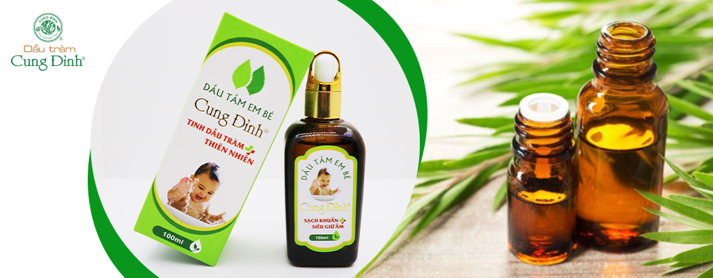Cho vài giọt vào nước ấm để tắm cho trẻ. Tuy nhiên, dầu tràm khó tan trong nước, cho nên chúng ta cần dùng sản phẩm dầu tắm em bé Cung Đình để tắm cho bé. Đây là sản phẩm dầu tắm chứa dầu tràm duy nhất trên thị trường có thể khuếch tán đều trong nước.