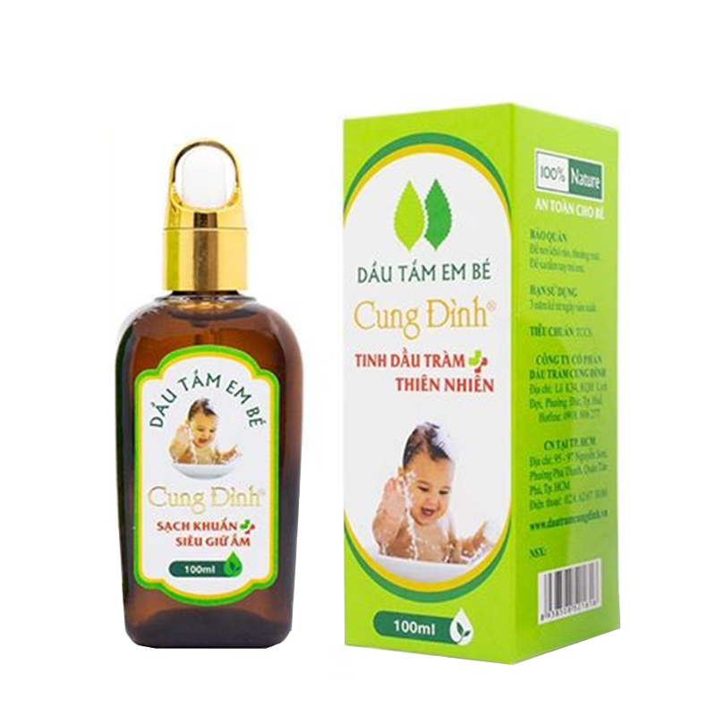 Khi nhắc tới dầu tràm, nhiều khách hàng đều biết đến các thành phẩm dạng dầu bôi, xông hơi, nhỏ giọt. Thế nhưng, có một sản phẩm dạng dầu tắm cho trẻ em cũng có thành phần tinh dầu tràm rất độc đáo, đó chính là dầu tắm em bé Cung Đình. Sản phẩm này là sự kết hợp giữa tinh dầu tràm trà tự nhiên với tinh dầu hoa hồng và nhiều dược liệu quý khác. 4 công cụng nổi bật của sản phẩm dầu tắm em bé Cung Đình chính là: làm sạch, giữ ấm, diệt khuẩn và xua đuổi côn trùng hiệu quả.