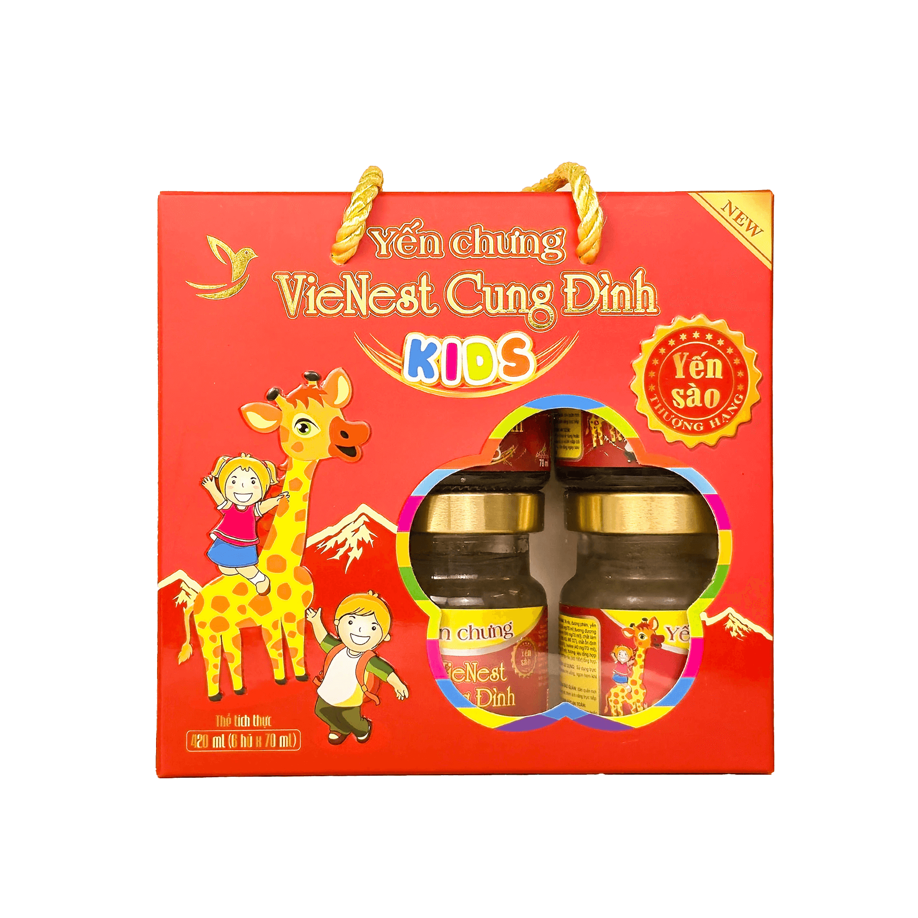 Mua yến chưng chất lượng cho bé từ đơn vị yến chưng VieNest Cung Đình là lựa chọn xứng đáng cho con trẻ.. Sản phẩm Yến Chưng For Kids est Cung Đình được chưng cất từ yến đảo thiên nhiên Khánh Hòa kết hợp cùng Taurine, Lysine và hương Vani tự nhiên tinh khiết, tạo nên thức uống dinh dưỡng cao cấp, vừa tinh túy, vừa an toàn tuyệt đối.